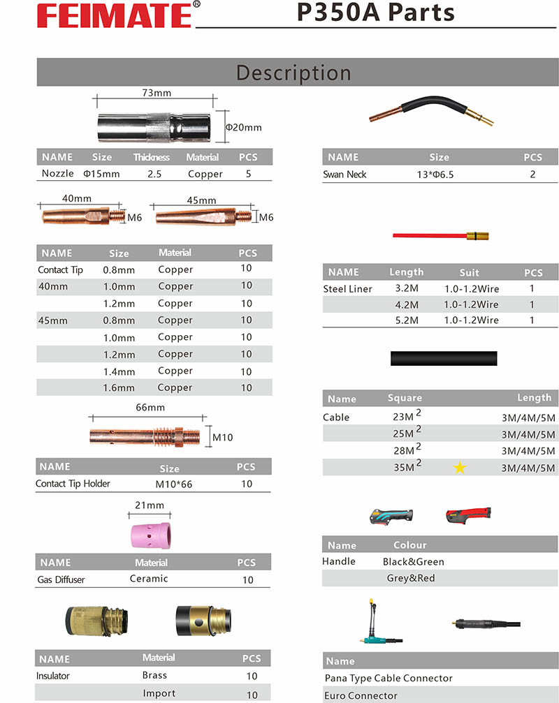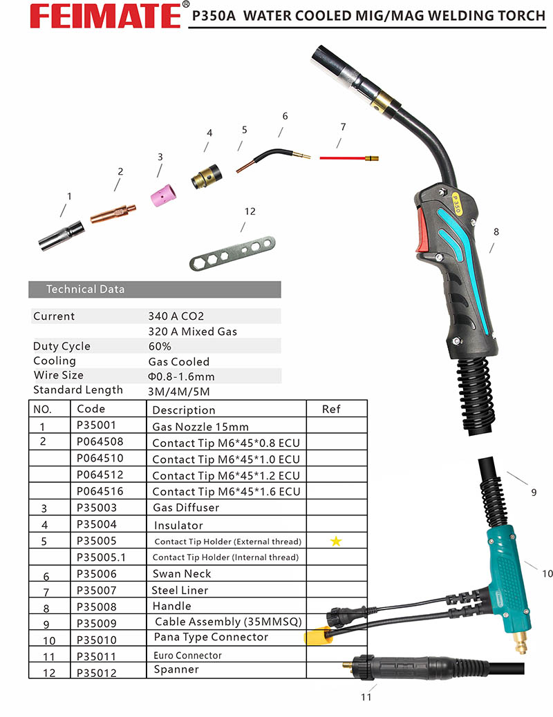 P350A MIG welding torch is widely used for 350A current Pana connection MIG welding machine,welds for steel, carbon steel, aluminium material.