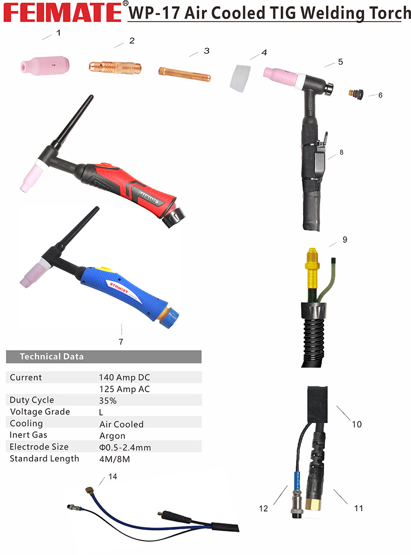 TIG-17 welding torch is widely used for 150A current tig welding machine,welds for stainless steel metal.